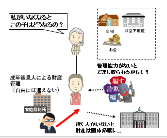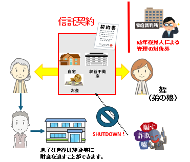 また、信託する財産は将来息子さんに成年後見人がついたとしても成年後見人の財産管理の対象外です。