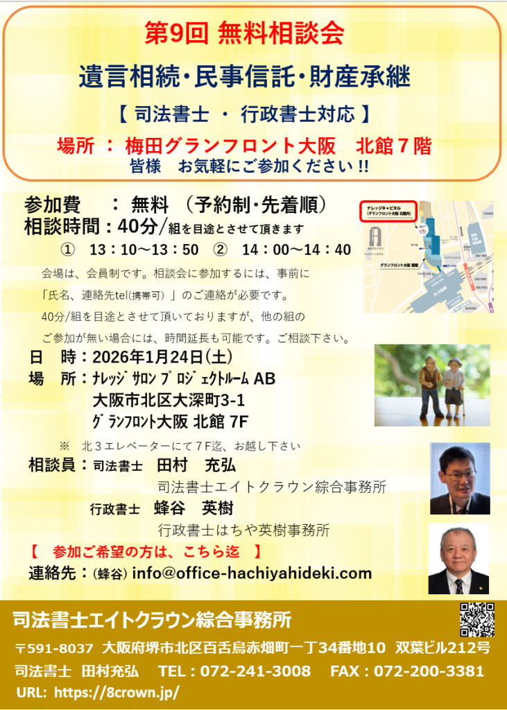 以下の相談会でも信託のスペシャリスト2名が親身になって話を聴いて分かりやすくお答えしますよ!